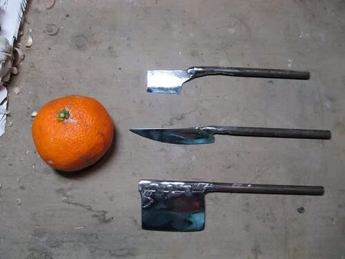 今日は刃物砥ぎの卒業式 最後の刃物は、昨日から取り掛かっていた「ホームセンター鉈」と柳田氏宅の「出刃包丁」でした この鉈は大きく刃コボレしていたのを、そのまま砥いであったんですが・・サンダーで大きく削って平らに 午前中、両方とも半分位仕上げた…