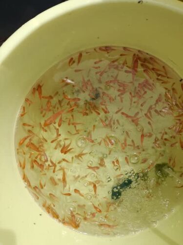餌の量を減らしたのと、底面からも排水を始めて水質向上に努めたからだと思うのですが・・・ 今朝の死骸は10匹足らずで一日中でも20匹余りでした 3.5トンのプール水槽には三千匹以上の毛仔や稚魚が入ってるので、共食いで尻尾を齧られてるのも多く、20匹や30…